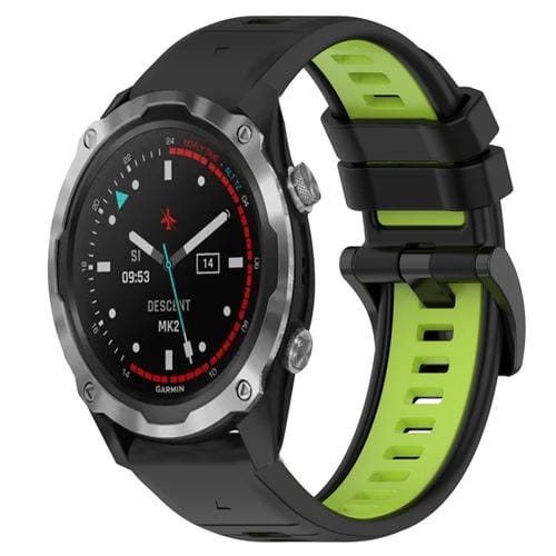 Correa de Silicona Two-Color para Garmin Descent Mk 2I 26mm Sports (Negro + Verde Lima)