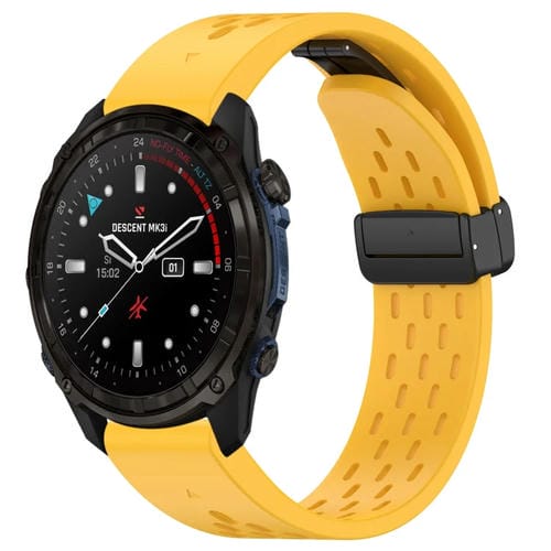 Correa de Silicona para Garmin Descent Mk3I Mk3 51mm 26mm con Hebilla Plegable Magnética (Amarillo)