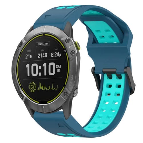 Correa de Silicona 26mm para Garmin Enduro con Hebilla Inversa Dos Colores (Azul + Verde Azulado)