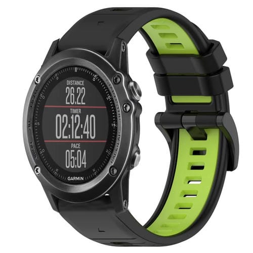 Correa de Silicona Deportiva para Garmin Fenix 3 26mm (Negro + Verde Lima)