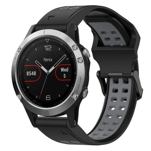 Correa de Reloj para Garmin Fenix 5 22mm Silicona con Hebilla Inversa (Negro + Gris)