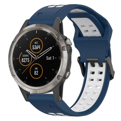 Correa de Reloj silicona para Garmin Fenix 5 Plus 22mm con hebilla inversa dos colores (Azul + Blanco)