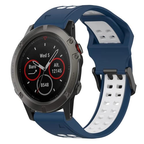 Correa de Reloj Garmin Fenix 5X 26mm Silicona con Hebilla Inversa (Azul + Blanco)