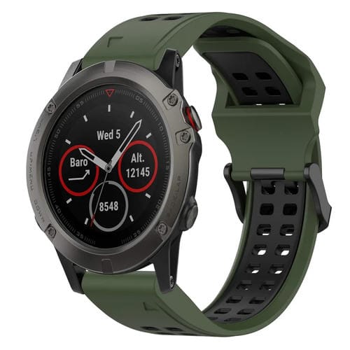 Correa de Silicona para Garmin Fenix 5X 26mm con Hebilla Inversa Dos Colores (Verde Militar + Negro)