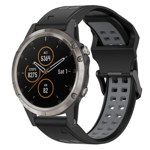 Correa de Silicona para Garmin Fenix 5X Plus 26mm con Hebilla Inversa Dos Colores (Negro + Gris)