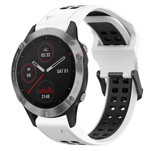 Correa de Reloj Silicona para Garmin Fenix 6 22mm con Hebilla Inversa Dos Colores (Blanco + Negro)
