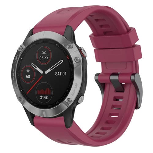 Correa de Silicona para Garmin Fenix 6 GPS con Hebilla Negra y Liberación Rápida (Rojo Vino)