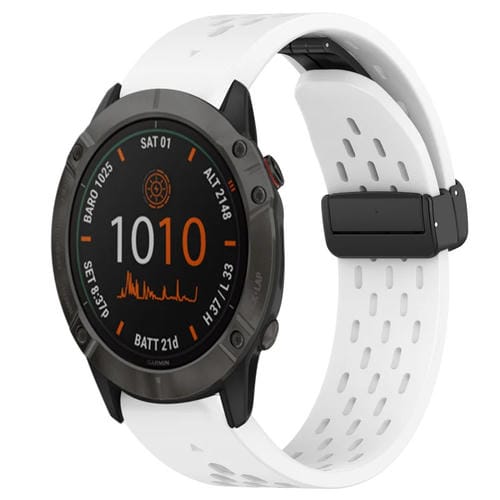 Para Garmin Fenix 6X 26mm Correa de Reloj de Silicona con Orificio y Hebilla Plegable (Blanco)