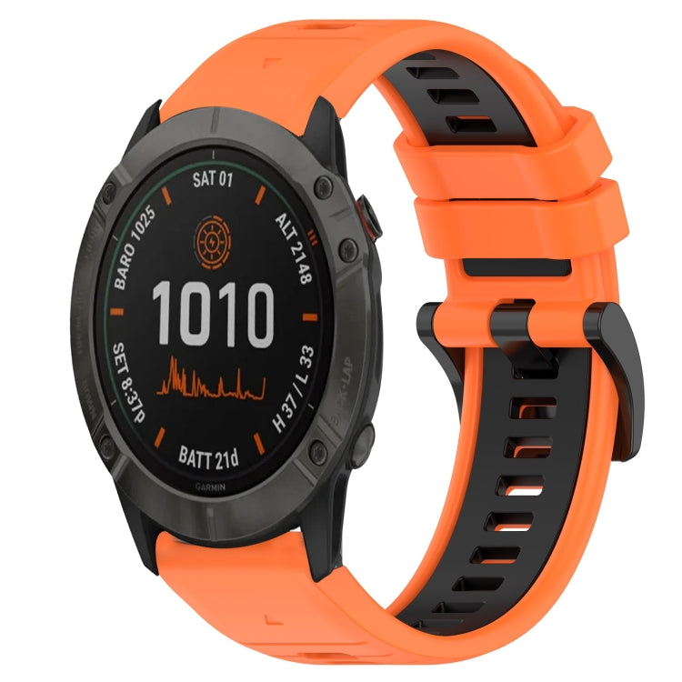 Watch Band silicona para Garmin Fenix 6X 26mm Sports dos colores (Naranja + Negro)