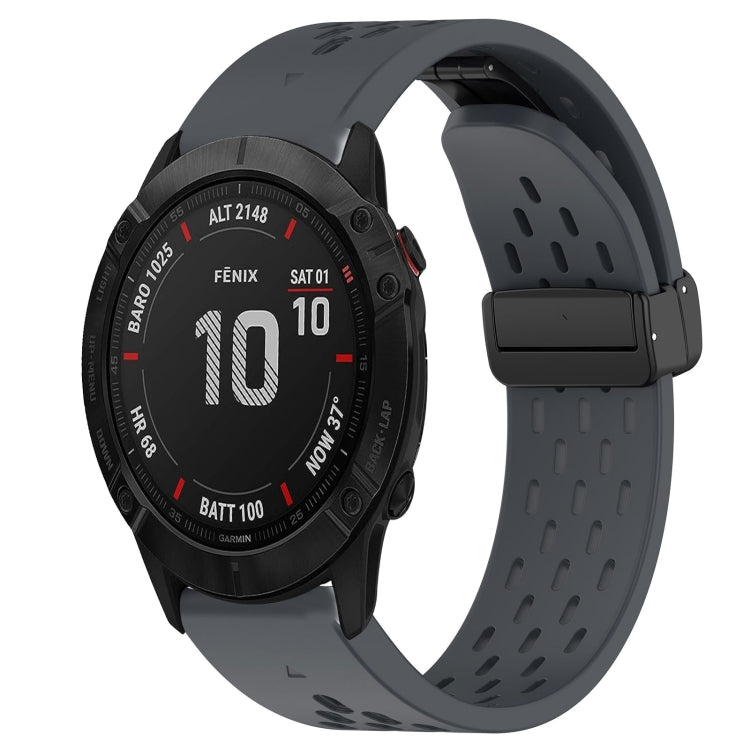 Correa de Reloj de Silicona para Garmin Fenix 6X Sapphire 26mm con Orificio para Hebilla Plegable (Gris Oscuro)