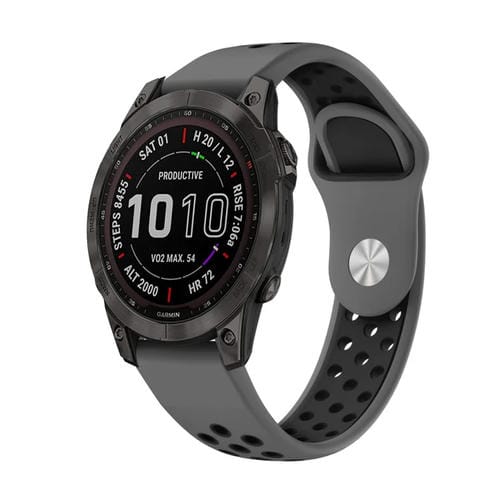 Banda de Reloj de Silicona para Garmin Fenix 7 22mm Deportes (Gris + Negro)