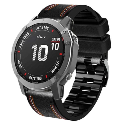 Correa de Reloj para Garmin Fenix 7 de cuero y silicona con costura tricolor (Negro)