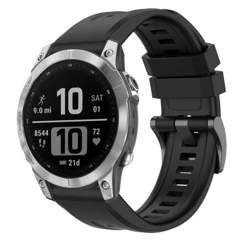 Correa de Silicona para Garmin Fenix 7 Pro con Liberación Rápida y Hebilla Negra (Negro)