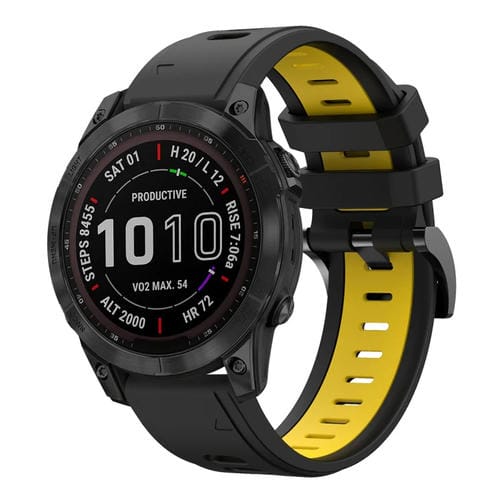 Banda de Reloj Silicona Deportiva para Garmin Fenix 7 Sapphire Solar 22mm (Negro + Amarillo)