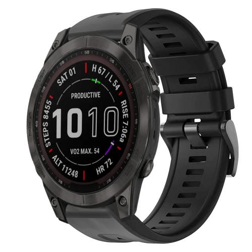 Correa de Reloj para Garmin Fenix 7 Sapphire Solar con Hebilla Metal y Silicona (Negro)