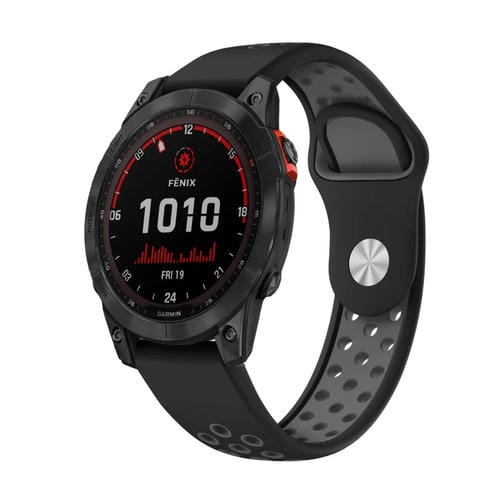 Banda de Reloj Garmin Fenix 7 Solar 22mm Silicona Transpirable (Negro + Gris)