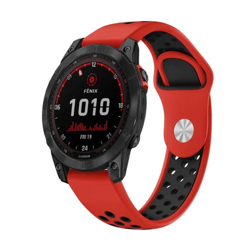 Banda de Reloj Garmin Fenix 7 Solar 22mm Silicona Transpirable (Rojo + Negro)