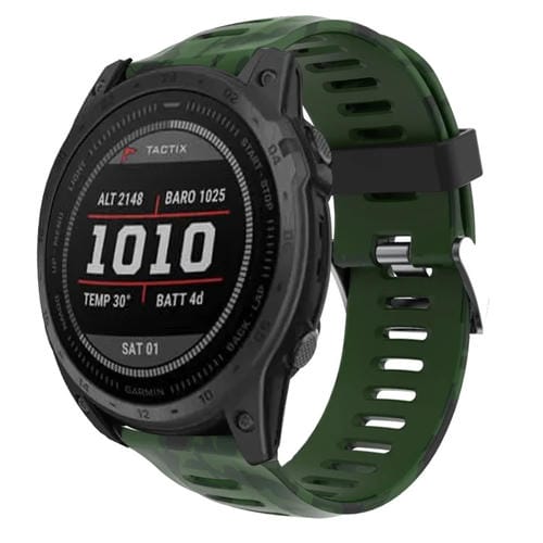 Correa de Silicona para Garmin Fenix 7X 26mm con Estampado Camuflaje (Verde Militar)