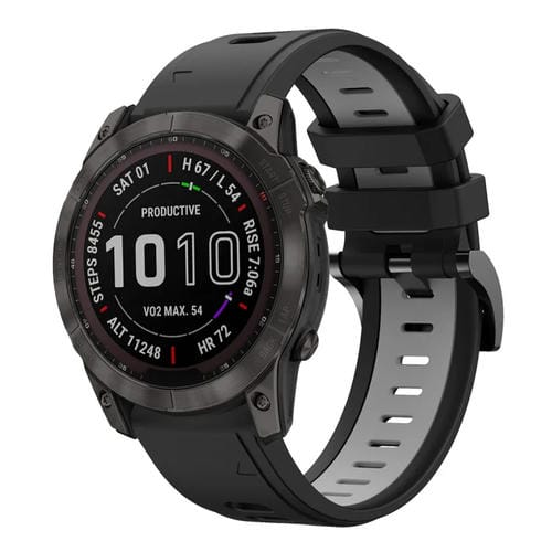 Banda de Reloj silicona deportiva Garmin Fenix 7X Solar 26mm dos colores (Negro + Gris)