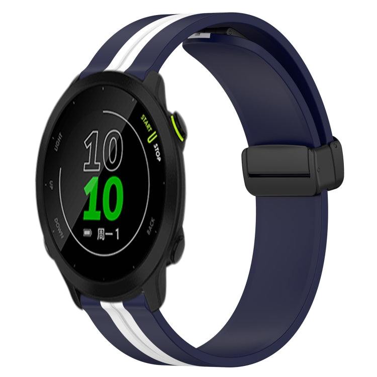 Correa de Reloj de Silicona para Garmin Forerunner 158 20mm con Cierre Magnético Plegable (Azul Medianoche + Blanco)