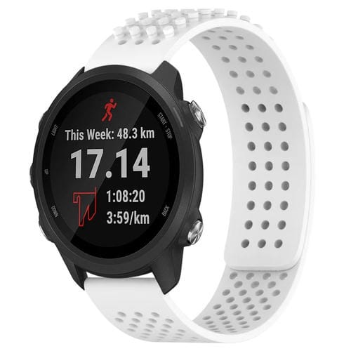 Correa de Reloj Silicona para Garmin Forerunner 245 Music con Puntos 3D Transpirables y Orificios de 20mm (Blanco)