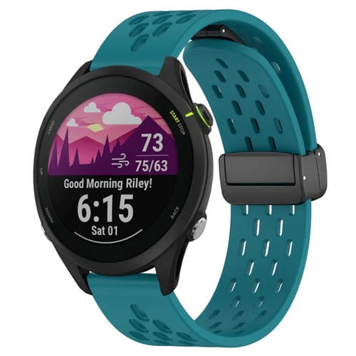 Correa de Silicona para Garmin Forerunner 255 con Cierre Magnético Plegable de 22mm (Verde Oculto)