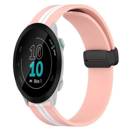 Correa de Reloj para Garmin Forerunner 55 20mm Silicona con Cierre Magnético Plegable (Rosa + Blanco)