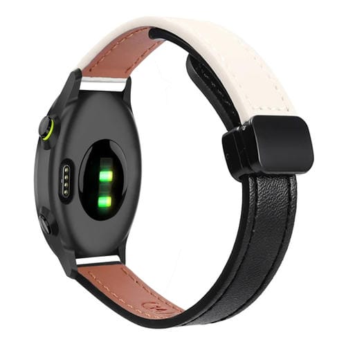 Correa de Reloj para Garmin Forerunner 55 de Cuero Microfibra 20mm con Hebilla Magnética (Negro + Albaricoque)