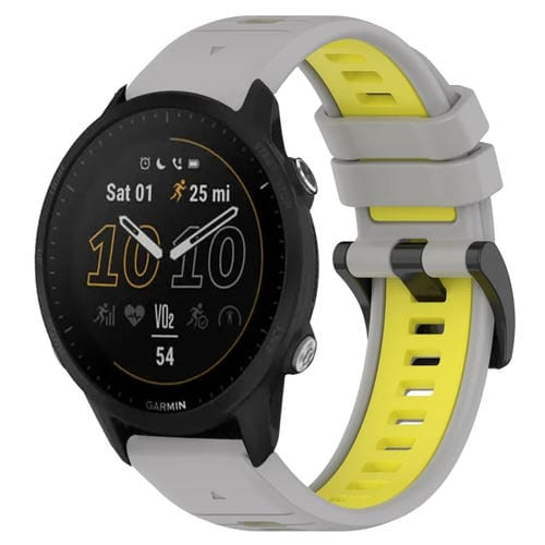 Para Garmin Forerunner 955 22mm Sports Two-Color Silicone Watch Band (Gris + Amarillo)