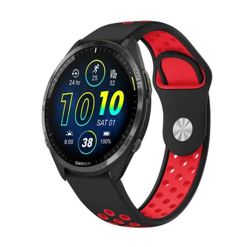 Banda de Reloj Garmin Forerunner 965 22mm Silicona Transpirable (Negro + Rojo)