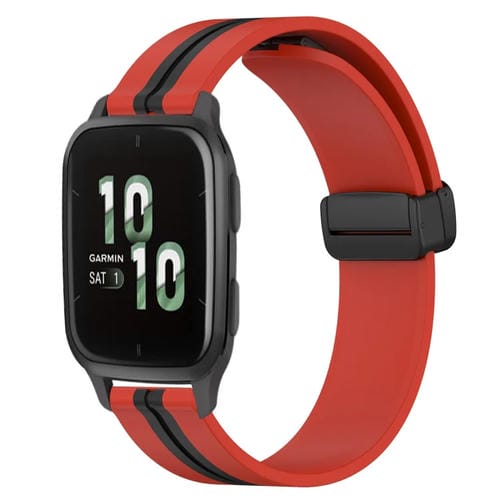 Correa de Reloj para Garmin Forerunner Sq2 20mm Silicona con Cierre Magnético Plegable (Rojo + Negro)