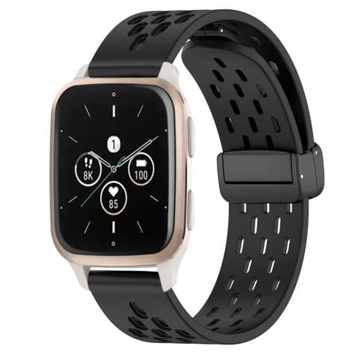 Correa de Silicona para Garmin Forerunner Sq2 con Cierre Magnético Plegable de 20mm (Negro)