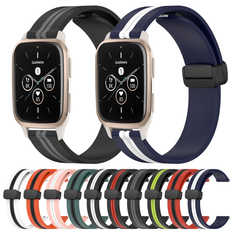 Correa de Reloj Garmin Forerunner Sq2 Music 20mm Silicona Cierre Magnético Plegable (Verde Oliva + Negro)