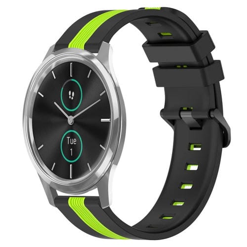 Correa de Silicona para Garmin Garminmove Luxe 20mm Dos Colores (Negro + Verde Lima)