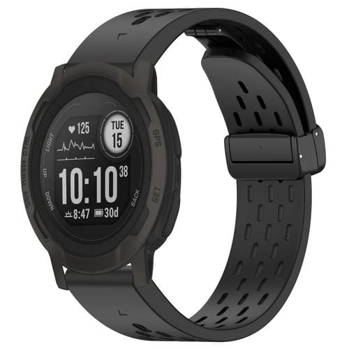 Correa de Silicona para Garmin Instinct 2 e Instinct con Hebilla Plegable Magnética y Orificios 22mm (Negro)