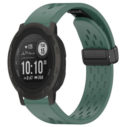 Correa de Silicona para Garmin Instinct 2 e Instinct con Hebilla Plegable Magnética y Orificios 22mm (Verde Oscuro)