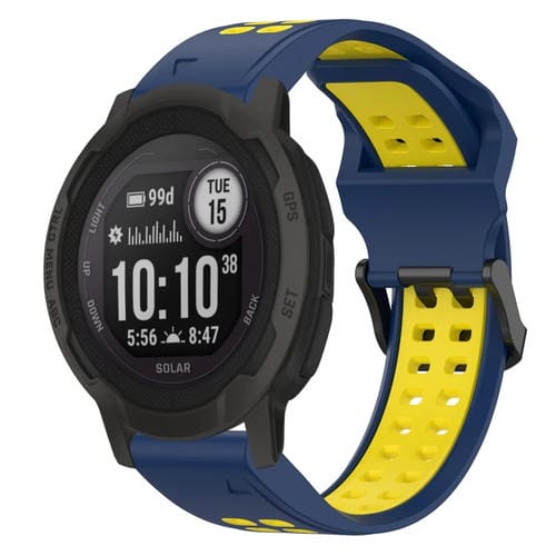 Correa de Silicona para Garmin Instinct 2S 20mm con Hebilla Inversa Dos Colores (Azul + Amarillo)