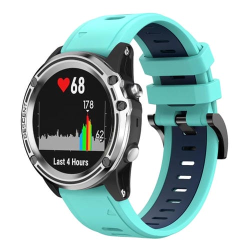 Banda de Reloj Silicona para Garmin Quatix 5 Sapphire 22mm Deportiva Dos Colores (Verde Menta + Azul)