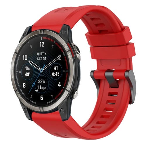 Correa de Silicona para Garmin Quatix 7 Pro Liberación Rápida con Hebilla Negra (Rojo)