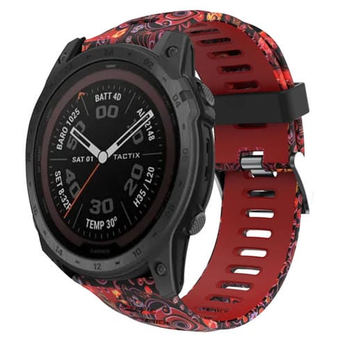 Correa de Reloj Silicona para Garmin Tactix 7 Pro 26mm Estampado Camuflaje (Rojo + Medusas)