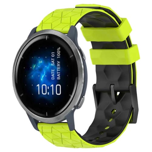 Banda de Reloj silicona Garmin Venu 2 22mm patrón fútbol (Verde Lima + Negro)