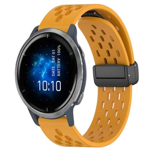 Para Garmin Venu 2 Correa de Reloj de Silicona con Cierre Magnético Plegable de 22mm (Amarillo)