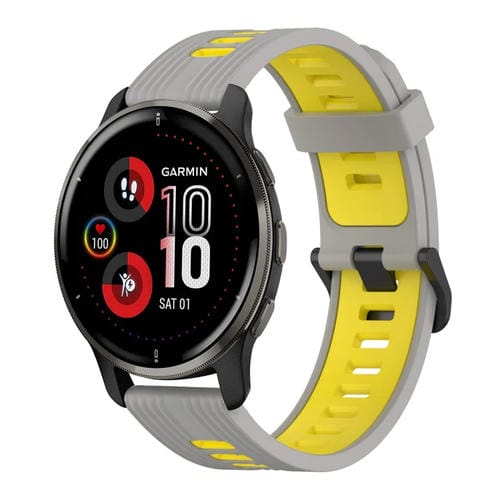 Banda de Reloj silicona Garmin Venu 2 Plus 20mm patrón dos colores (Gris+Amarillo)