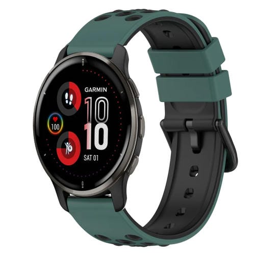 Correa de Silicona para Garmin Venu 2 Plus 20mm Dos Colores (Verde Oliva + Negro)