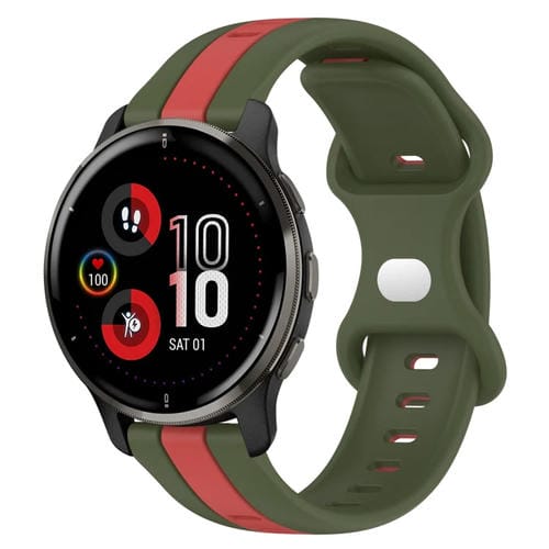 Correa de Silicona para Garmin Venu 2 Plus 20mm con Hebilla de Mariposa (Rojo + Verde Militar)