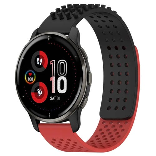 Correa de Reloj Silicona para Garmin Venu 2 Plus 20mm con Puntos 3D Transpirables (Negro + Rojo)