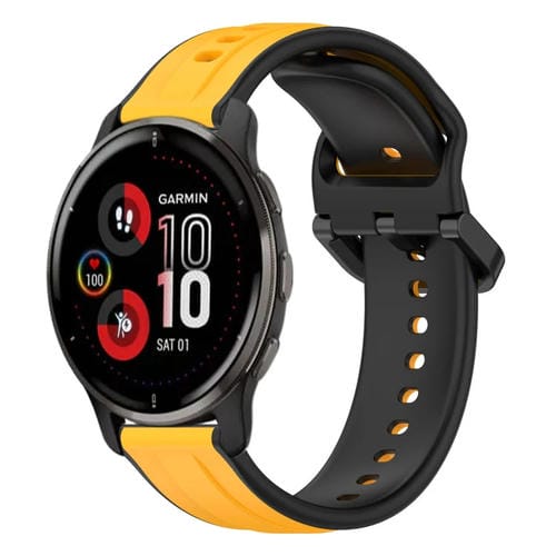 Correa de Reloj para Garmin Venu 2 Plus Silicona Dos Colores Bucle Convexo 20mm (Amarillo + Negro)