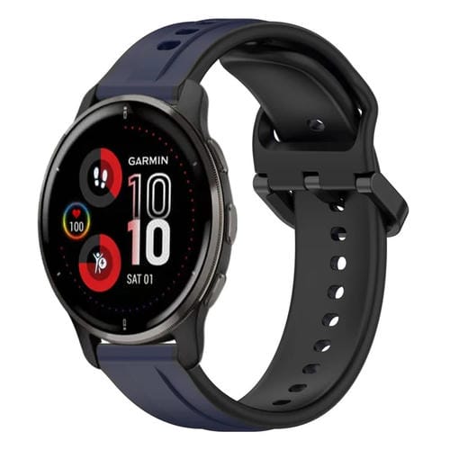 Correa de Reloj silicona para Garmin Venu 2 Plus 20mm (Azul Medianoche + Negro)