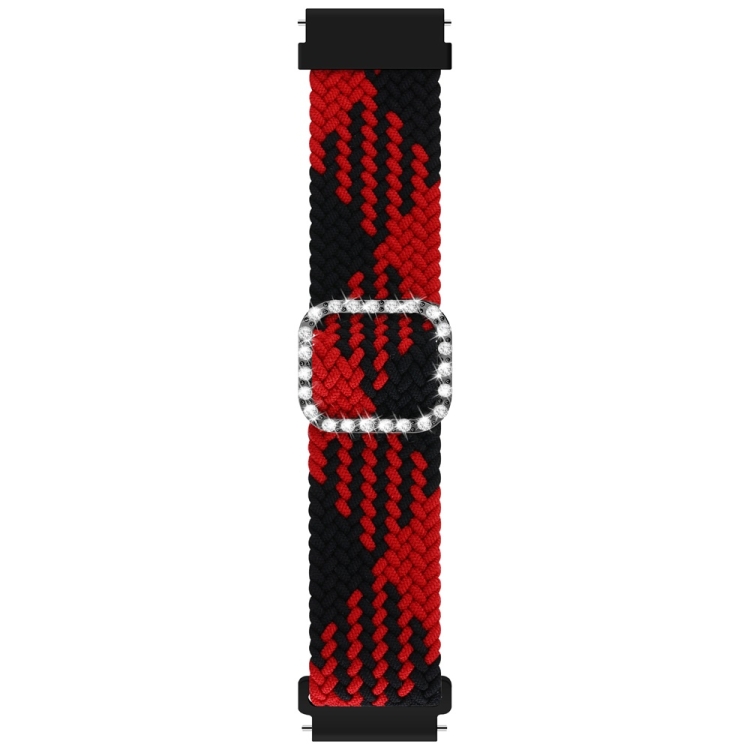Banda de Reloj 22mm para Garmin Venu 2 Samsung Gear S3 Xiaomi Haylou Rs3 Hebilla Diamante Elástica Ajustable (Negro Rojo)