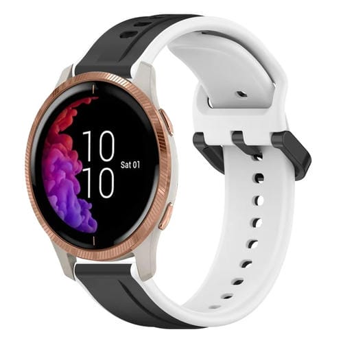 Correa de Silicona para Garmin Venu 20mm con Bucle Convexo (Negro + Blanco)